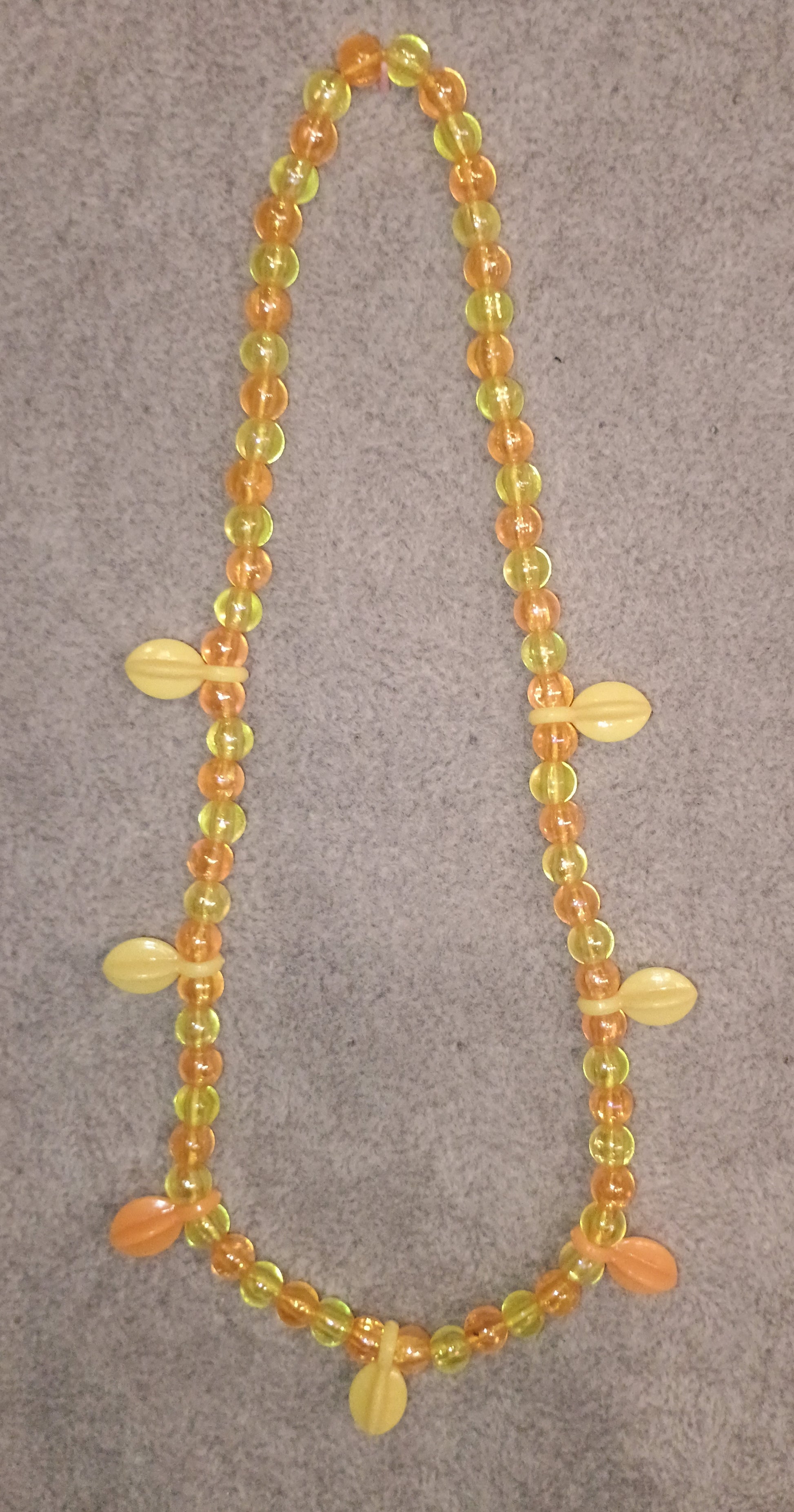 Kinder Halskette in gelb/orange, elastisch und mit Anhängern.