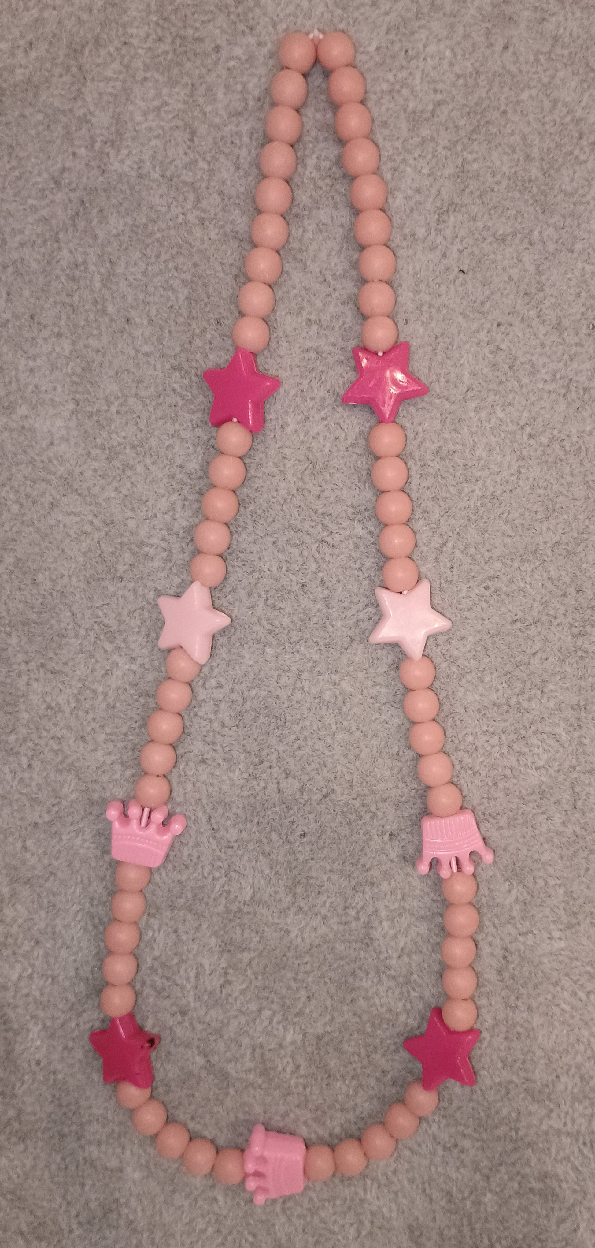 Kinder Halskette in verschiedenen Rosa-/Pinktönen, elastisch, mit Sternen und Kronen verschönert.