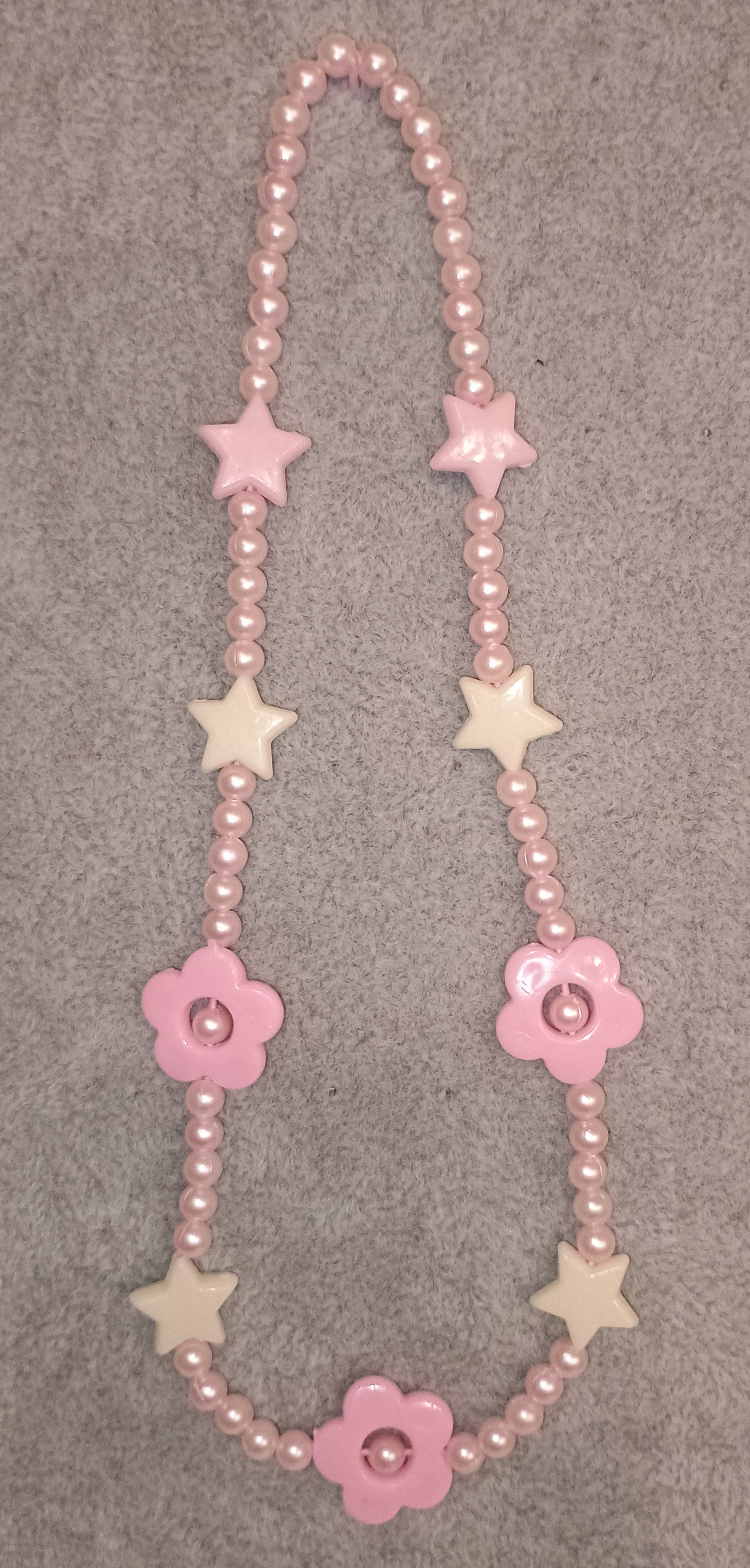 Kinder Halskette in rosa/weiss, elastisch, mit Sternen und Blumen verschönert.