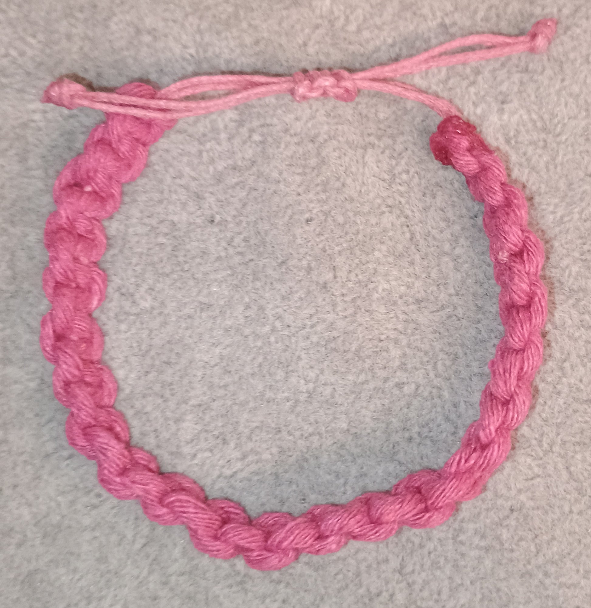Pinkes breites Armband. Lässt sich durch einen Makrameeverschluss zum verschieben in verschiedene Größen einstellen. Ungefähre Größenangabe zwischen 16 und 22 cm.