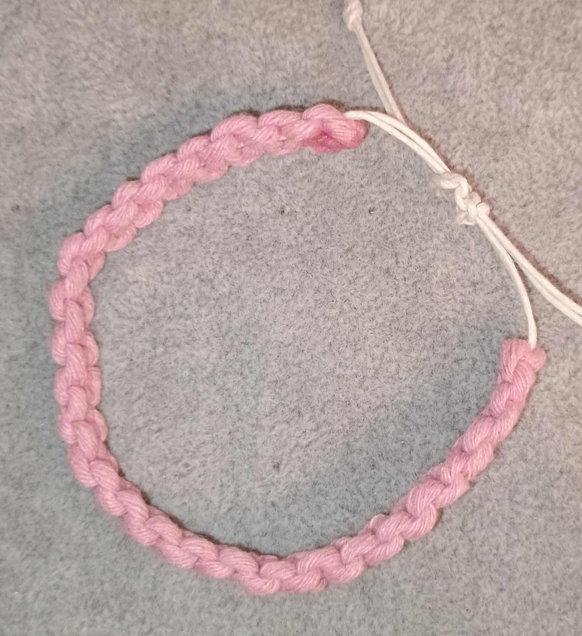 Rosanes breites Armband. Lässt sich durch einen Makrameeverschluss zum verschieben in verschiedene Größen einstellen. Ungefähre Größenangabe zwischen 16 und 22 cm.