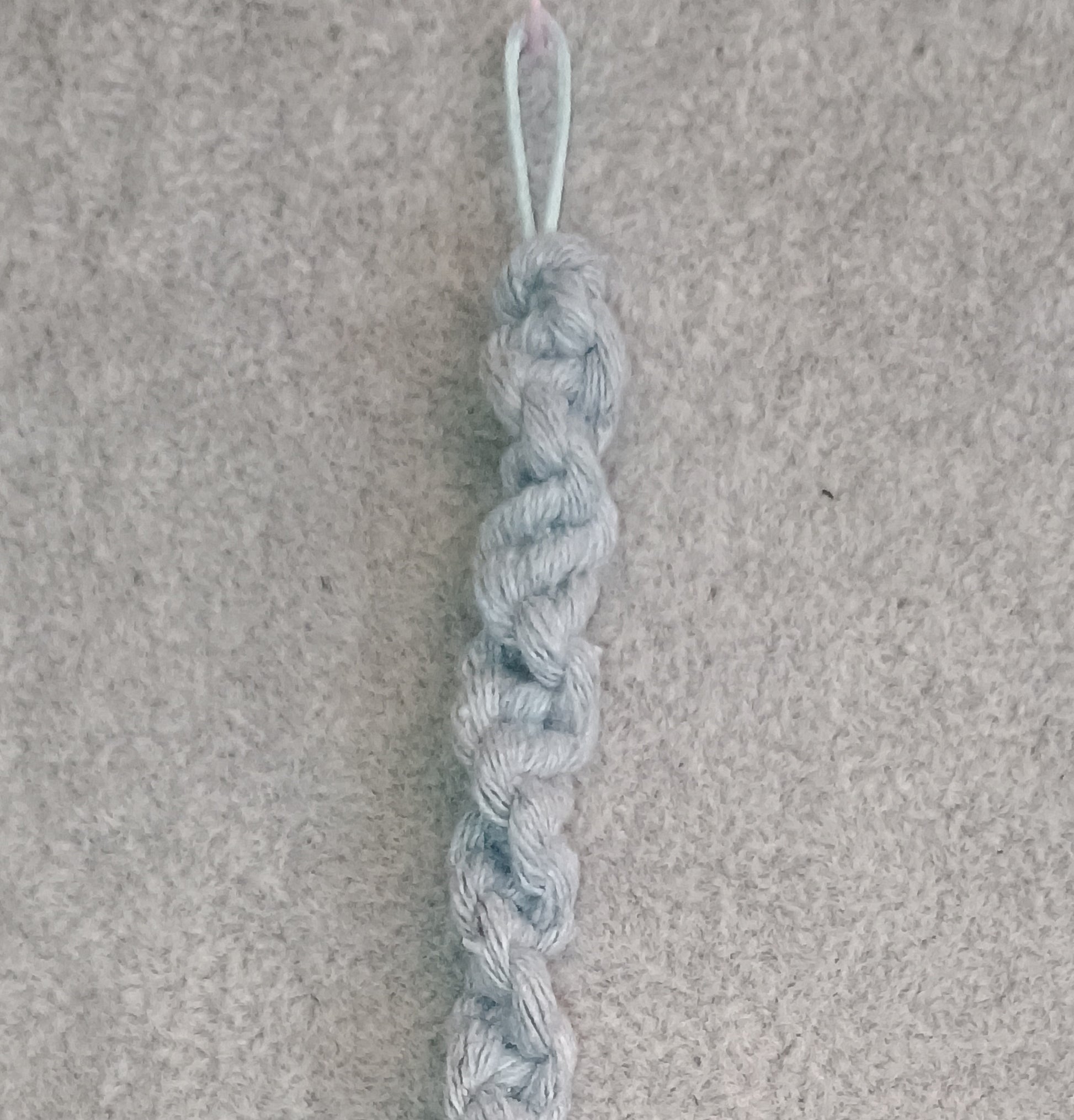 Breites hellblau Armband mit Wellenmuster. Lässt sich durch einen Schlaufenverschluss zum Knoten in verschiedene Größen einstellen. Ungefähre Größenangabe zwischen 16 und 22 cm.