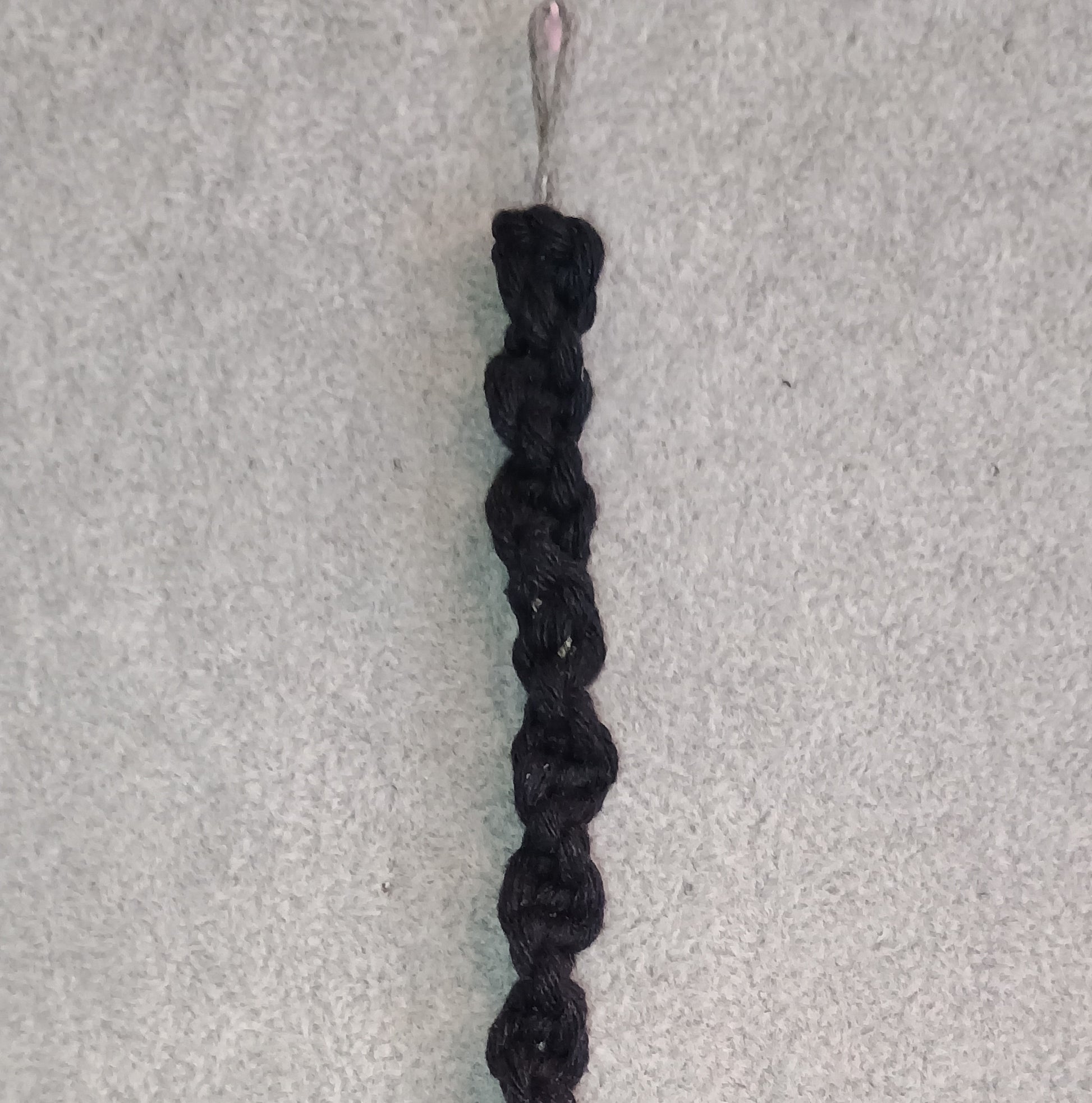 Breites dunkelblaues Armband mit Wellenmuster. Lässt sich durch einen Schlaufenverschluss zum Knoten in verschiedenen Größen einstellen. Ungefähre Größenangabe zwischen 16 und 22 cm.